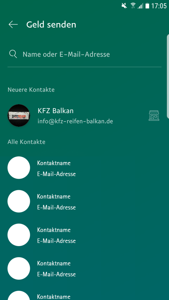 Dazu gehen Sie einfach zum „Kontakt“ -> „Neuer Kontakt“ -> Name kann frei festgelegt werden -> „E-Mail“ eintragen -> Speichern -> Fertig.